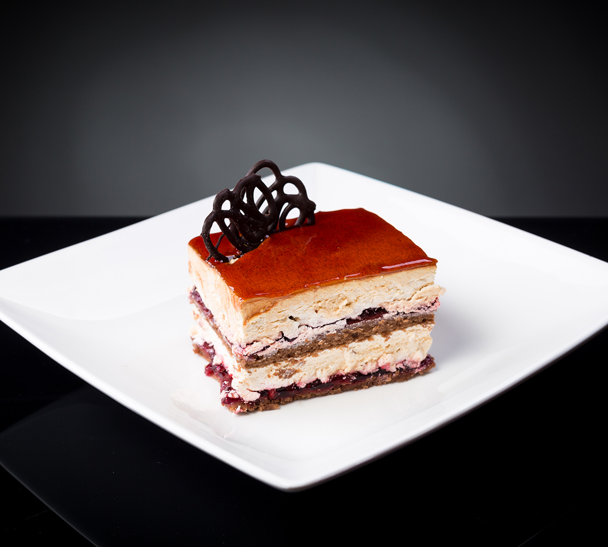 Posne kakao korice u kombinaciji sa višnjom i glazurom sa ukusom karamele čini veoma neobičan spoj.